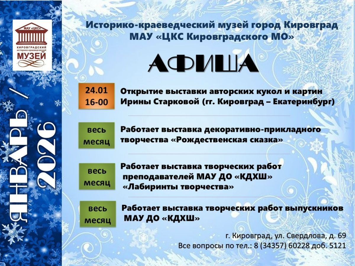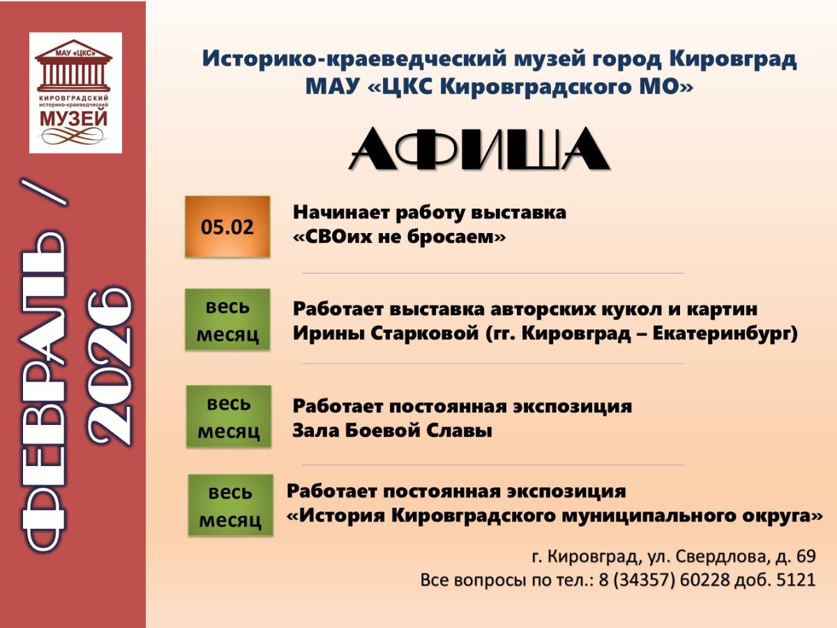 Афиша мероприятий музея на февраль 2026г